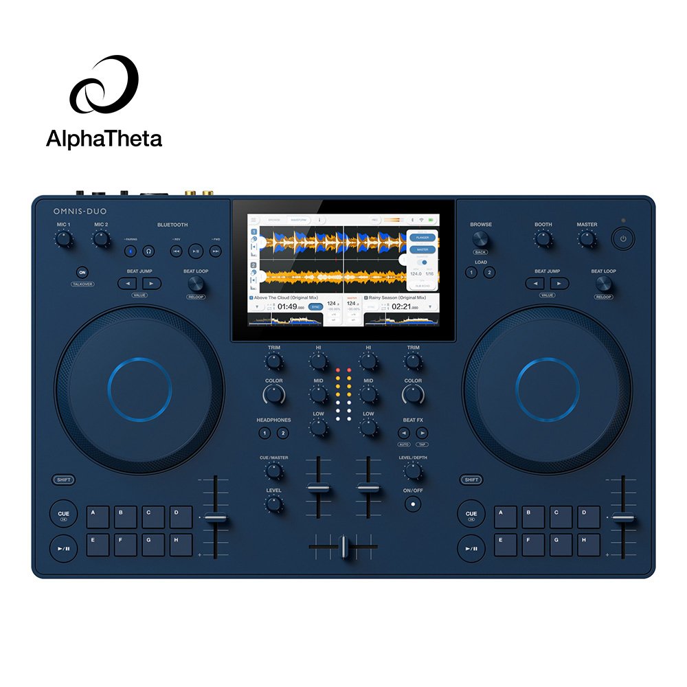 The AlphaTheta OMNIS-DUO, a battery-powered all-in-one DJ system with Bluetooth connectivity, upto 5 hours of battery, spin tunes anywhere, anytime!
